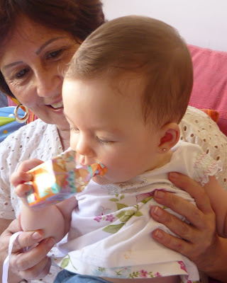 Milena até parou de chorar quando recebeu o dela.Sobre a perspectiva da noite de hoje, já tive que parar 3 vezes no meio desta postagem p/ socorrer a Milena que acabou de vomitar, e a Marina e Isabela que estavam tossindo. Quero só ver o que me aguarda...