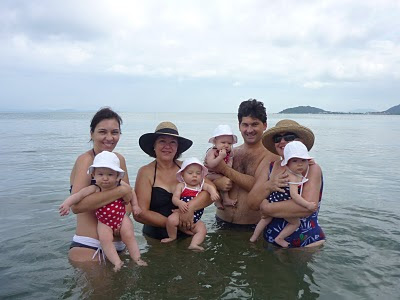 Esta foto foi um encontro com os amigos da faculdade do papai, mas parecia mesmo um encontro de gêmeos. Os meninos no carrinho verde ao centro são o Arthur e o Bernardo.