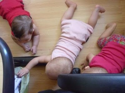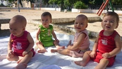 Semana passada foi a avaliação da fisioterapeuta, em que as 4 se saíram muito bem. O interessante é que elas estão se nivelando em desenvolvimento. Uma vai puxando a outra. Mas ninguém ainda conseguiu fazer a Isabela engatinhar.