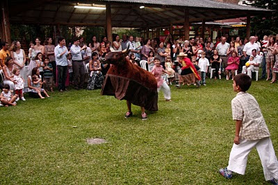 O tema da festa foi "Boi de Mamão", uma dança folclórica tradicional aqui da ilha, com direito a apresentação do grupo "Alevanta meu boi" que encantou a todos, das crianças aos adultos. O vestido das meninas era de "maricotinha", uma das personagens do Boi.