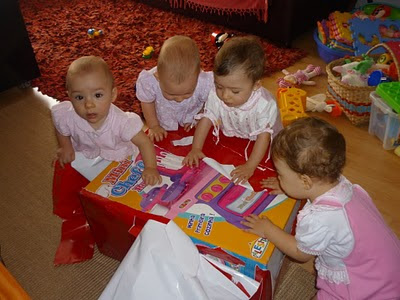 Os dias seguintes ao aniversário foram de muita bagunça aqui em casa. Eram muitos pacotes para abrir. As 4 chegaram até a ficar agoniadas com a pacotada que estava pela sala.