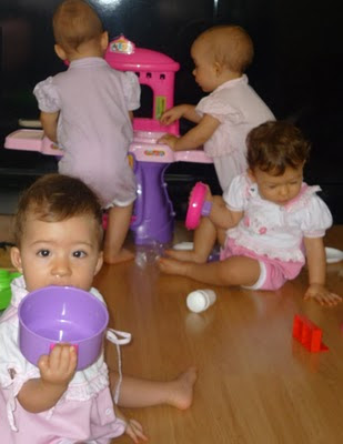 Elas têm se divertido muito com os brinquedos que ganharam. E têm brigado bastante também. Não adianta ter milhares de brinquedos em volta, tem hora que o mais interessante é o que está nas mãos da irmãzinha.